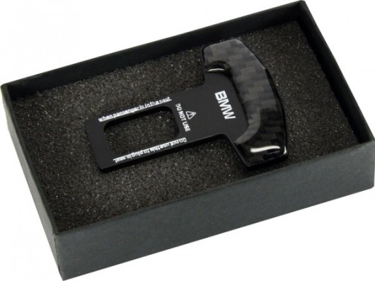 Заглушка ремня с логотипом BMW Карбон станет изящным и стильным дополнением оригинального интерьера Вашего салона. С помощью ее Вы сможете избавиться от надоедливого сигнала, который заставляет пристегнуть ремни безопасности.
