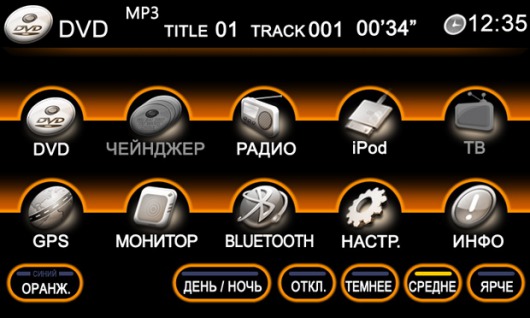 С сенсорного экрана монитора 6-ти дискового DVD чейнджера виртуальным