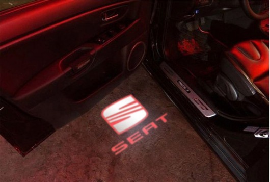Подсветка с логотипом Seat — новый нестандартный вариант тюнинга! В дверь авто устанавливается миниатюрный проектор, который выводит на асфальт цветное изображение логотипа Сеат. Картинка появляется, когда вы открываете дверь, и исчезает, когда дверь закрывается. Выглядит это очень стильно и необычно.