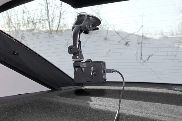 Автомобильный регистратор LR-3000 удобно крепится на лобовое стекло и не мешает обзору во время движения.