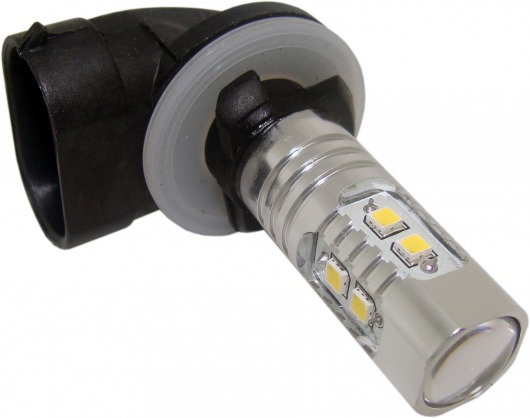 Цвет свечения — ярко-белый, поэтому лампа идеально подходит для установки в противотуманные фары. Благодаря широкому углу рассеивания модель идеально освещает дорогу даже в самую ненастную погоду. Вы можете использовать этот прибор и в качестве дневных ходовых огней. Даже если один из светодиодов вдруг перегорит, лампа все равно продолжает работать.