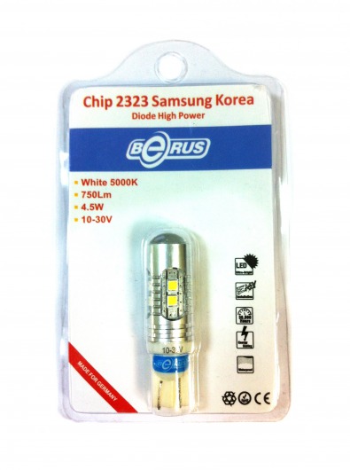 Светодиодная лампа T10 4.5W предназначена для установки в задние габариты. Она намного ярче обычных галогеновых ламп, отлично освещает дорогу даже ночью и в дождливую, туманную погоду. Цвет свечения со временем не изменяется. Служит такая лампа очень долго, при этом потребляет незначительное количество энергии.