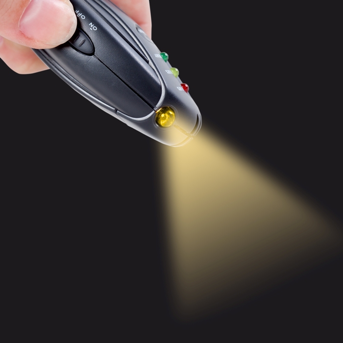 Алкотестер ALCO STOP AT-197 подскажет вам, можно ли садиться за руль, быстро определив содержание алкоголя в вашем организме. Одна из основных особенностей данной модели — ее внешний вид. Алкотестер AT-197 выполнен в виде брелока. Он миниатюрный и легкий. Вы можете носить этот приборчик в кармане либо пристегнуть прямо к ключам, для чего у алкометра есть специальная застежка. Содержание алкоголя в крови алкометр сообщает с помощью светодиодов 3-х цветов.