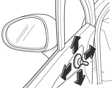 рычажным способом. Это означает, что "настроить" и установить зеркало в удобное для себя положение вы можете с помощью рычажка, который располагается на внутренней стороне двери.