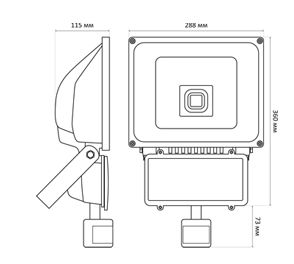 Размеры led прожектора — 288×360(+73)×115 мм. Данная модель рассчитана на напряжение 220 В. Мощность диодного прожектора X-Flash — 80 Вт., яркость — 7520 Лм, а температура свечения – 4000 K (это нейтральный белый свет).