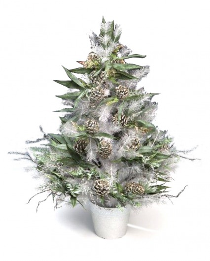 Оригинальная новогодняя елка «Искристая фантазия» — это не просто искусственная елка, а потрясающая новогодняя композиция из белой ели, зеленых листочков и настоящих еловых шишек. Стильно и необычно. Такая елочка станет замечательным украшением офиса или дома в преддверии Нового года, создаст неповторимую праздничную атмосферу. Новогодняя ель высотой в 0,91 м помещена в серебристый горшочек — это добавит еще больше оригинальности в оформление новогоднего интерьера.
