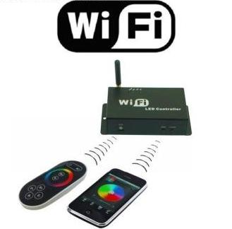 А принцип работы WiFi  2818 следующий: Wi-Fi cигнал от мобильного устройства преобразуется в высокочастотный радиосигнал управления RGB контроллерами.