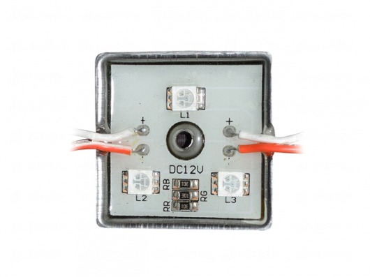 Квадратный светодиодный модуль MS 5050-3 IP65 3240Lm это 3 диода SMD 5050 и резисторы с рабочим напряжением 12V, которые находятся в металлическом корпусе. Яркость 1 диода составляет 54Lm, а всей упаковки — 3240Lm, что дает вам очень яркое и насыщенное свечение. Корпус залит двухкомпонентным компаундом. Поэтому вы можете использовать светодиодный модуль led в условиях  повышенной влажности и резкого перепада внешней температуры от  -30 до +50 градусов.