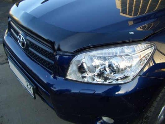 Дефлектор капота для Toyota RAV4 — это щиток из орг.стекла темного цвета, который крепится на переднюю часть капота. Благодаря тому, что дефлектор разработан специально для Toyota RAV4 2006-2009 г.в., устанавливается он легко и быстро, при этом сверлить кузов вам не нужно. По форме же накладка полностью повторяет контуры капота. Данная модель прочна и долговечна: она надежно крепится, не боится коррозии, экстремальных температур и серьезных перегрузок.