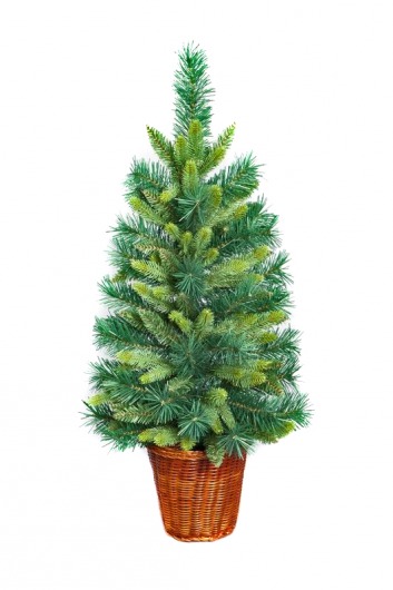 Чудесная новогодняя елка в корзине принесет в Ваш дом частичку леса. Дерево плоское с одной стороны, и вы можете повесить его на дверь или стену. Елочка помещена в декоративную корзину, что придаст уютности интерьеру вашего жилища. Высота изделия 0,76 м.