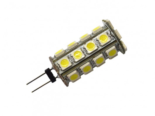 Светодиодная лампа G4/30-5050 с 30 светодиодами SMD 5050 и напряжением 10-30V — это отличная альтернатива галогенным лампам и лампам накаливания с цоколем G4. Яркость данной лампы составляет 12-15 Лм на 1 диод. Цвет свечения лампы — холодный белый.