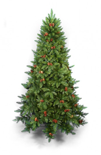 Восхитительная новогодняя елка "Дуглас" высотой 2,3 метра словно только что вышла из зимнего леса! Зеленая елка с шишками смотрится одновременно естественно и нарядно. Хвоя выглядит натурально, но при этом не осыпается. Это избавит вас от неприятного процесса уборки иголок с пола, что неизбежно с натуральной елью.