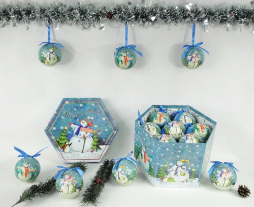 Стоит ли говорить, что такой набор в красочной подарочной коробке станет отличным новогодним подарком кому-нибудь из ваших родных и близких. Дети особенно будут рады таким ярким шарикам на елку с веселыми новогодними рисунками — добродушный снеговик наверняка придется им по душе. К тому же, пластиковые шары не бьются и потому безопасны для детей.