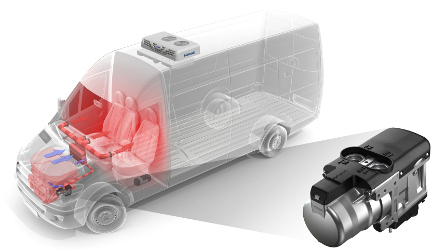 Эта модель может быть отдельным компонентом модульной системы автомобильного питания. Например, жидкостным отопителем для двигателя и воздушным — для кабины.