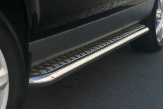 Пороги на Audi Q7 – это боковые подножки из нержавеющей стали диаметром 60 мм, которые позволяют более комфортно входить и выходить из салона автомобиля. Подножки Audi Q7 очень прочные, надежные и долговечные: они не боятся коррозии, сколов и царапин и выдерживают большие нагрузки.