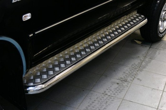Пороги на Great Wall Deer Pickup – это боковые подножки из нержавеющей стали диаметром 60 мм, которые позволяют более комфортно входить и выходить из салона автомобиля. Подножки Great Wall Deer Pickup очень прочные, надежные и долговечные: они не боятся коррозии, сколов и царапин и выдерживают большие нагрузки.
