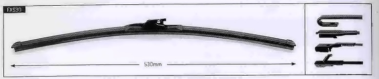 Trico Flex FX530 — это бескаркасная щетка стеклоочистителя, которой вы можете пользоваться как летом, так и зимой. Длина дворника Trico FX530 составляет 53 см. Стеклоочиститель Trico FX530 оснащен мультиадаптером и поэтому легко устанавливается на автомобиль любой марки со следующим креплением: