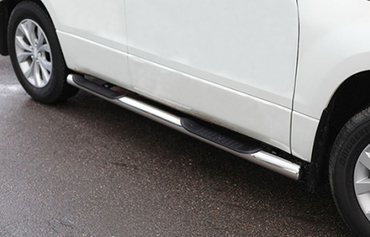 Боковые пороги-подножки сделаны специально для автомобилей Suzuki Grand Vitara от 2008 г.в., поэтому устанавливаются достаточно просто и без повреждений корпуса. Помимо этого, стальные пороги-трубы с проступями для Сузуки Гранд Витара смотрятся очень стильно и эффектно. Они добавят вашему авто еще больше солидности и внушительности.