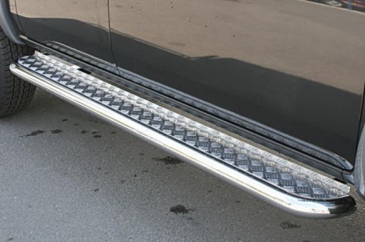 Боковые пороги-подножки сделаны специально для автомобилей Ford Ranger от 2007 г.в., поэтому устанавливаются достаточно просто и без повреждений корпуса. Помимо этого, стальные пороги с листом для Форд Рейнджер смотрятся очень стильно и эффектно. Они добавят вашему авто еще больше солидности и внушительности.