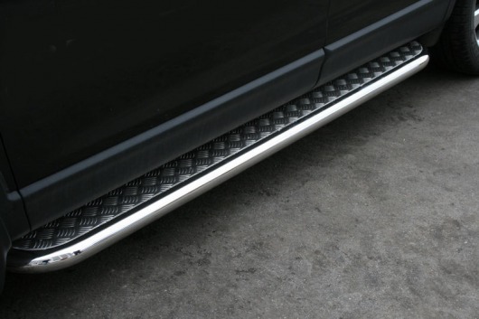Боковые пороги-подножки сделаны специально для автомобилей Mazda CX-9 от 2008 г.в., поэтому устанавливаются достаточно просто и без повреждений корпуса. Помимо этого, стальные пороги с листом для Мазда СХ-9 смотрятся очень стильно и эффектно. Они добавят вашему авто еще больше солидности и внушительности.