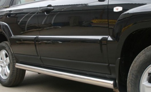 Пороги на Kia Sportage – это боковые подножки из нержавеющей стали диаметром 76 мм, которые позволяют более комфортно входить и выходить из салона автомобиля. Подножки Kia Sportage очень прочные, надежные и долговечные: они не боятся коррозии, сколов и царапин и выдерживают большие нагрузки.