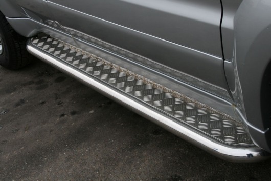 Боковые пороги-подножки сделаны специально для автомобилей Ford Escape от 2008 г.в., поэтому устанавливаются достаточно просто и без повреждений корпуса. Помимо этого, стальные пороги с листом для Форд Эскейп смотрятся очень стильно и эффектно. Они добавят вашему авто еще больше солидности и внушительности.