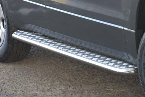 Пороги на Suzuki Jimny – это боковые подножки из нержавеющей стали диаметром 42 мм, которые позволяют более комфортно входить и выходить из салона автомобиля. Подножки Suzuki Jimny очень прочные, надежные и долговечные: они не боятся коррозии, сколов и царапин и выдерживают большие нагрузки.