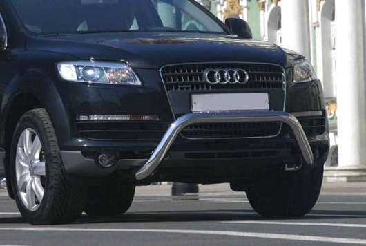 Передняя решетка Audi Q7 (кенгурятник) – это защитная дуга на бампер из нержавеющей стали диаметром 76 мм.