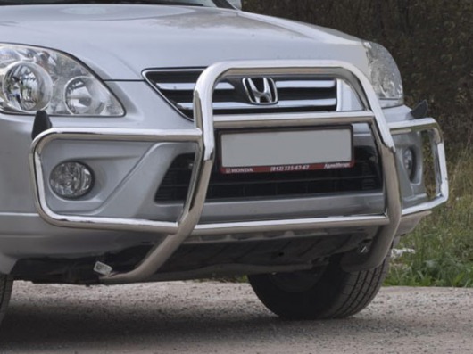 Передняя решетка Honda CR-V (кенгурятник) – это защитная дуга на бампер из нержавеющей стали диаметром 60/42 мм.