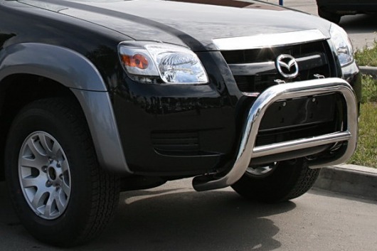 Передняя решетка Mazda BT-50 (кенгурятник) – это защитная дуга на бампер из нержавеющей стали диаметром 76 мм.