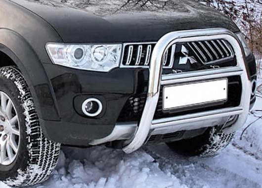 Передняя решетка Mitsubishi Pajero Sport (кенгурятник) – это защитная дуга на бампер из нержавеющей стали диаметром 76 мм.