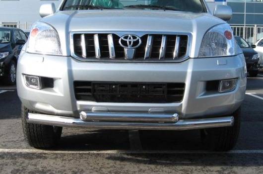 Защита переднего бампера для Toyota Land Cruiser Prado 120 – это двойная труба на бампер из нержавеющей стали диаметром 76/60 мм.
