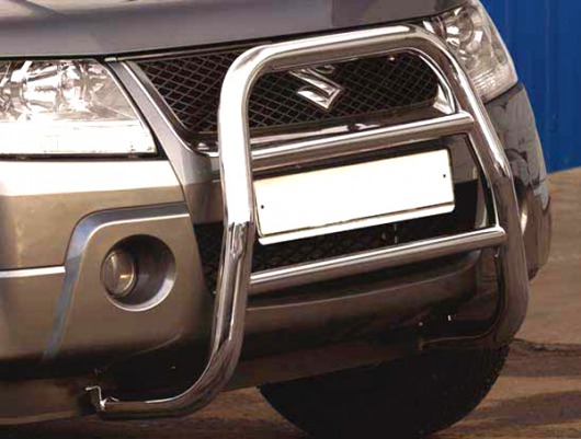 Передняя решетка Suzuki Grand Vitara (кенгурятник) – это защитная дуга на бампер из нержавеющей стали диаметром 60 мм.