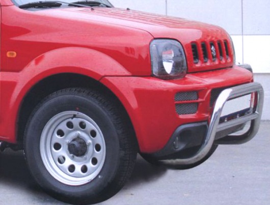 Передняя решетка Suzuki Jimny (кенгурятник) – это защитная дуга на бампер из нержавеющей стали диаметром 60 мм.