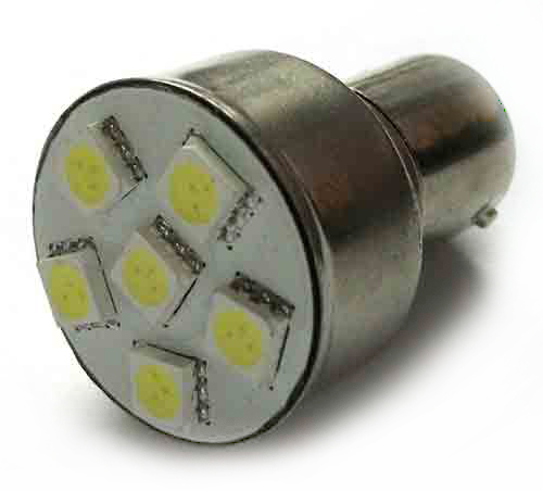Автомобильная светодиодная лампа Р-21 6SMD - это яркая светодиодная лампа на базе 6 сверхъярких SMD-светодиодов, с ярким белым или красным цветом свечения.