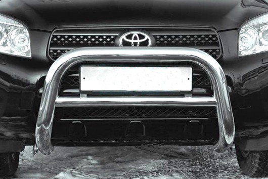 Передняя решетка Toyota RAV4 (кенгурятник) – это защитная дуга на бампер из нержавеющей стали диаметром 76 мм.