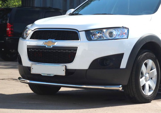 Труба на бампер Chevrolet Captiva защищает передний бампер автомобиля от различных механических повреждений при мелких ДТП и неудачных парковках, а также незаменима при езде по бездорожью. А кроме этого, труба на передний бампер Шевроле Каптива смотрится очень стильно и эффектно.