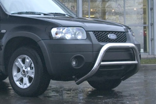 Защитная решетка переднего бампера предназначена для автомобилей Ford Maverick от 2004 г.в. Вам не придется подгонять передний кенгурятник под размеры кузова вашего авто. И с монтажом проблем не возникнет: установка кенгурятника Ford Maverick производится в штатные отверстия, а значит, необходимость сверлить кузов отпадает.
