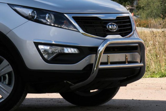 Передняя решетка Kia Sportage (кенгурятник) – это защитная дуга на бампер из нержавеющей стали диаметром 60 мм.