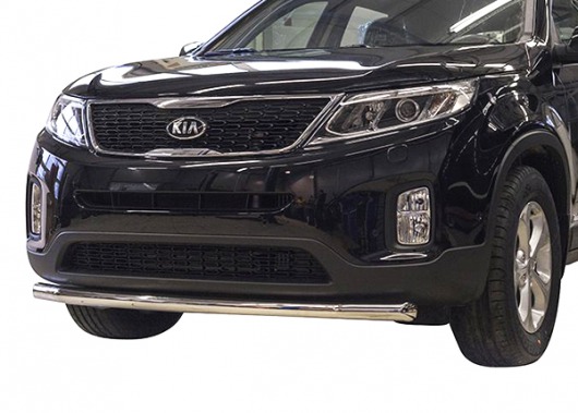 Труба на бампер Kia Sorento защищает передний бампер автомобиля от различных механических повреждений при мелких ДТП и неудачных парковках, а также незаменима при езде по бездорожью. А кроме этого, труба на передний бампер Киа Соренто смотрится очень стильно и эффектно.