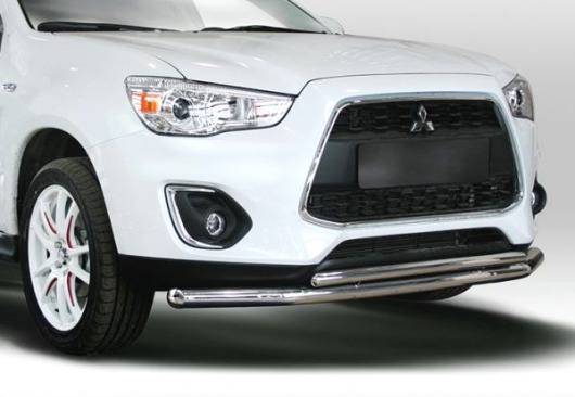 Защита переднего бампера для Mitsubishi ASX – это двойная труба на бампер из нержавеющей стали диаметром 60/42 мм.