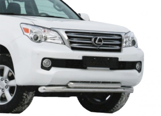 Защита переднего бампера для Lexus GX460 – это двойная труба на бампер из нержавеющей стали диаметром 76/60 мм.