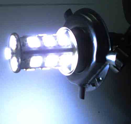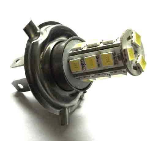 Лампа светодиодная Н4 предназначена для установки в противотуманные фары. Лампа построена на базе 18 сверхярких SMD светодиодов и излучает холодный белый свет.