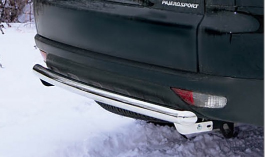 Защита заднего бампера труба предназначена для автомобилей Mitsubishi Pajero Sport от 2008 г.в. Вам не придется подгонять защиту под размеры бампера вашего авто. И с монтажом проблем не возникнет: установка защиты заднего бампера производится в штатные отверстия, а значит, необходимость сверлить кузов отпадает.
