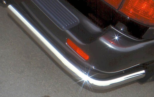 Защита заднего бампера для Toyota LC 100 – это защитные уголки на бампер из нержавеющей стали диаметром 76 мм.