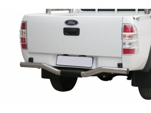 Защита заднего бампера труба предназначена для автомобилей Ford Ranger от 2007 г.в. Вам не придется подгонять защиту под размеры бампера вашего авто. И с монтажом проблем не возникнет: установка защиты заднего бампера производится в штатные отверстия, а значит, необходимость сверлить кузов отпадает.