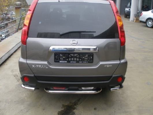 Защита заднего бампера для Nissan X-Trail (лок.сборка СПб) – это защитные уголки на бампер из нержавеющей стали диаметром 76 мм.