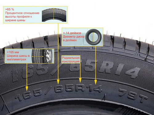 Определить маркировку шины очень просто: она прописана на боковой стороне шины. (Подробнее)