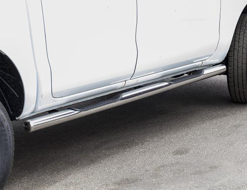 Пороги на Ford Ranger – это боковые подножки из нержавеющей стали диаметром 76 мм, которые позволяют более комфортно входить и выходить из салона автомобиля. Подножки Ford Ranger очень прочные, надежные и долговечные: они не боятся коррозии, сколов и царапин и выдерживают большие нагрузки.