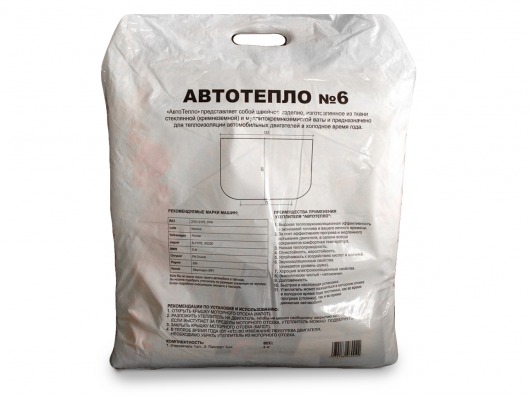Одеяло для двигателя "Автотепло №6" поможет вам решить проблему прогрева и запуска двигателя в зимнее время года. Производство данных автоодеял находится в г. Челябинске. Они изготавливаются по особой запатентованной технологии и с применением лучшего оборудования. Утеплитель Автотепло — отличное решение, особенно если установка предпускового подогревателя вам не по карману или вы не готовы установить его по ряду причин.